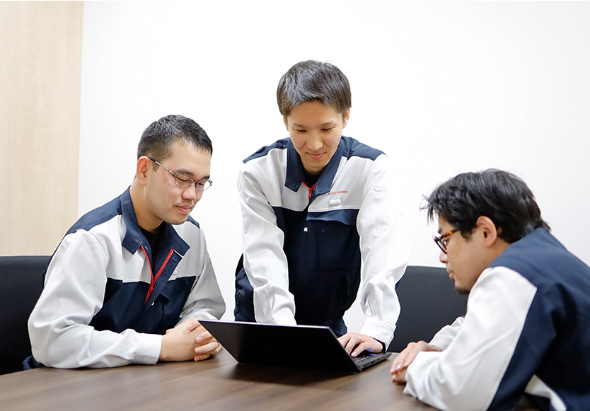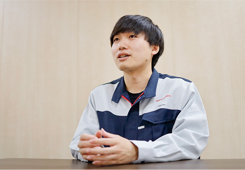 プロジェクトに携わっているメンバーは約10名です。プロジェクトリーダーは私の直属の上司である技術1課課長ですが、このプロジェクトは技術開発部の社員のみで構成されているのではなく、製造部からも数名参加しています。プロジェクトを進める中では製造部が関わるフェーズがあるからです。入社して半年でプロジェクトメンバーとして任命され、ひとつのテーマを任されるというのは光栄なことで、上司からこの話をされたときはとても嬉しく感じました。